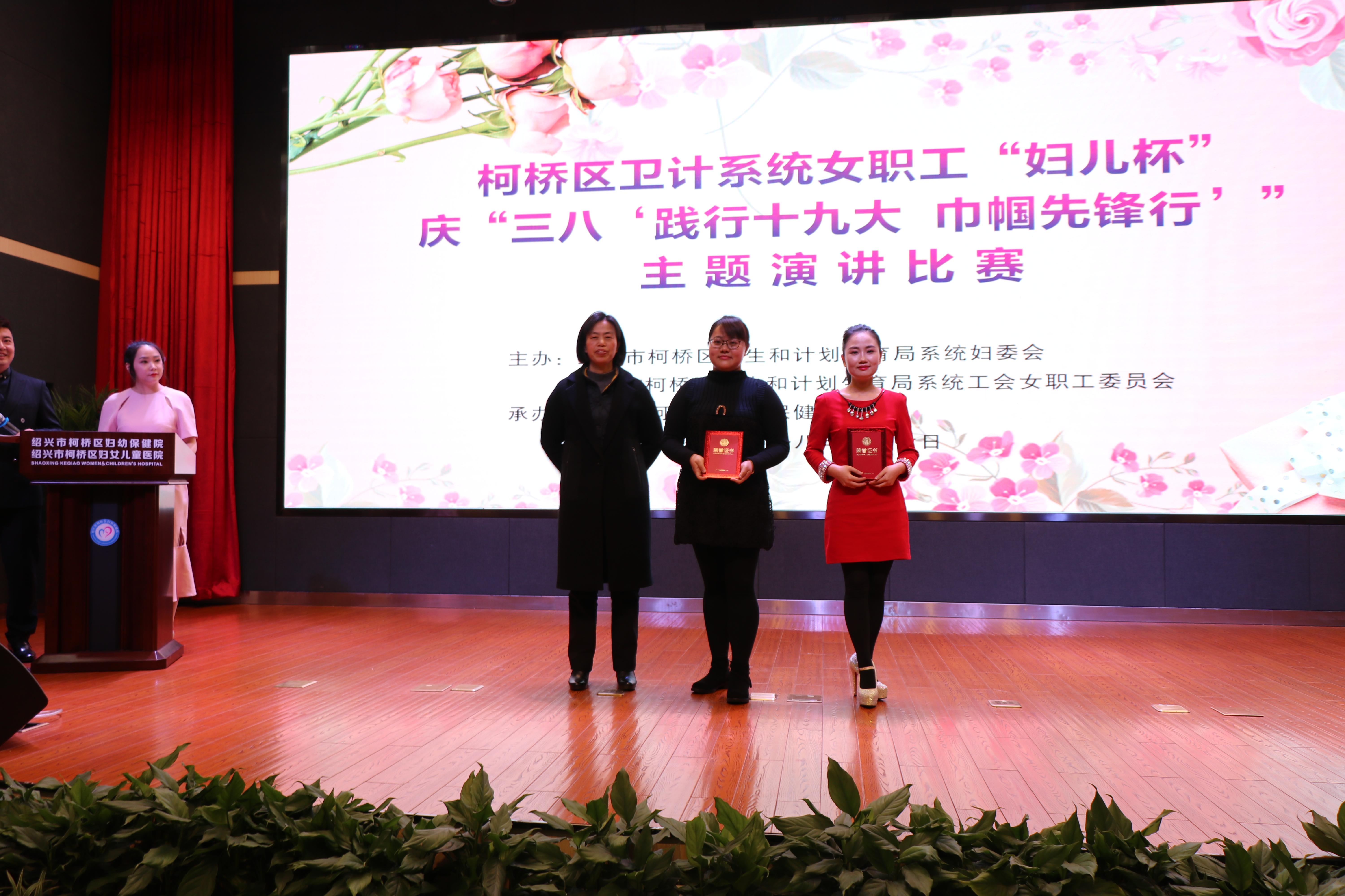 3月7日下午,由绍兴市柯桥区卫生和计划生育系统妇委会主办,我院承办的“践行十九大,巾帼先锋行”庆三八主题演讲比赛在我院举行。经过三个小时的激烈角逐,我院选送的李乐萍、丁思琦分别获得了本次演讲比赛一等奖、二等奖的好成绩!...