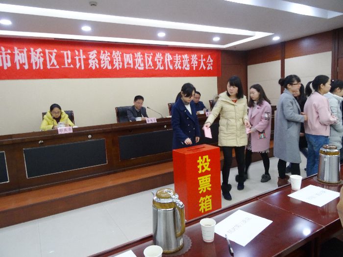 按照区委[2016] 117 号文件精神,为了推荐和选取柯桥区卫计系统第四选区第十四次党代会代表1名,11月30日下午在柯桥区委党校召开代表选举工作会议。区卫计局领导,我院及绍兴第三医院、区卫生进修学校全体党员参加此次选举会议。