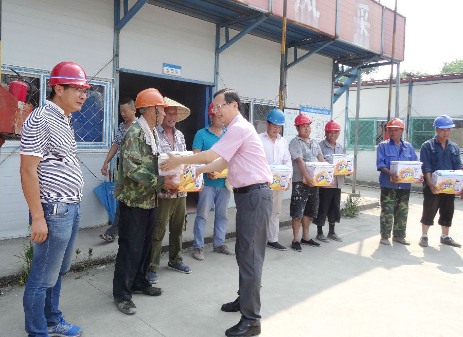 骄阳似火,持续10多天出现38℃以上极端高温天气。严重影响工程的生产安全和职工身体健康。7月26日上午,由柯桥区人大副主任沈祖卫带队,一行赴正在建设的我院新建工程工地,亲切慰问高温天气下坚守建筑一线的工人们,为他们送去防暑降温物品,向辛勤工作的广大劳动者表示诚挚感谢、致以崇高敬意。区委办、人大办、府办、政协办、总工会、卫计局、度假区等部门负责人陪同。