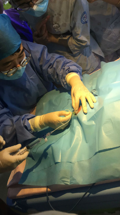 在生后一周内,我院新生儿科王红卫主任为宝宝实施了柯桥区首例新生儿脐静脉置管术,由于脐静脉置管放置时间的限制,在病情许可的条件下,一周后新生儿科韩亚萍护士长为宝宝成功完成了柯桥区首例新生儿PICC置管术。PICC是指经外周静脉穿刺中心静脉置管,是利用导管从外周手臂的静脉进行穿刺,导管直达靠近心脏的大静脉,因此能够有效保护上肢静脉,减少静脉炎的发生,减轻患者的疼痛,提高患者的生命质量。