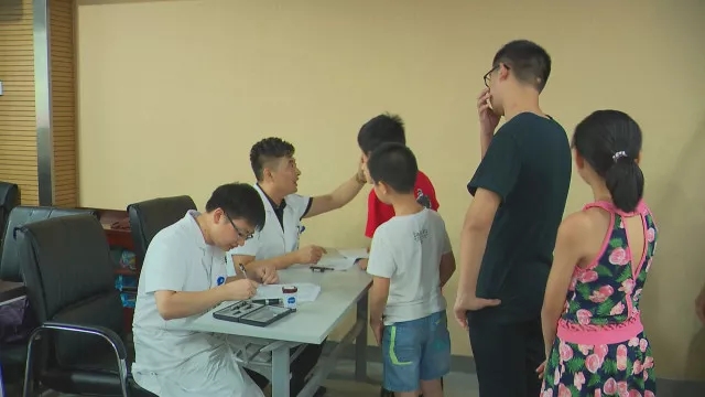 为保障游泳学员的健康卫生,我院医生对当天参加培训的所有学员进行了游泳课开班前的专项体检。