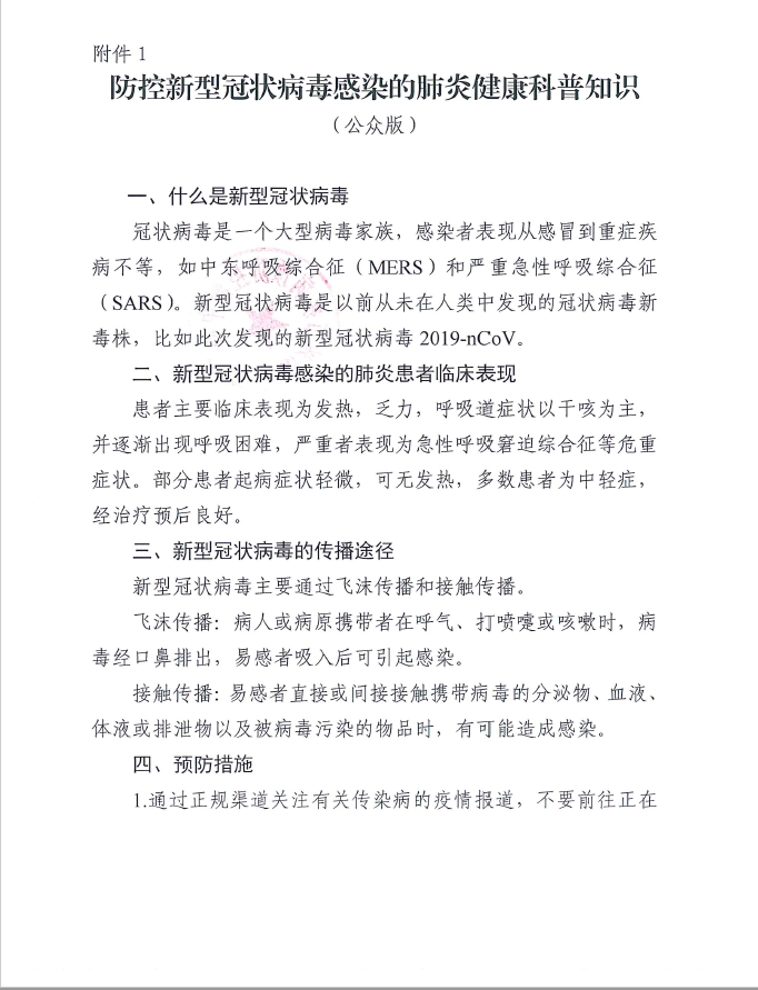 防控新型冠状病毒感染的肺炎健康科普知识(公众版)