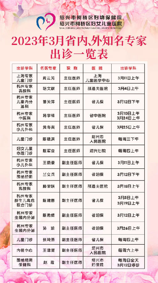 2023年3月外院专家出诊信息