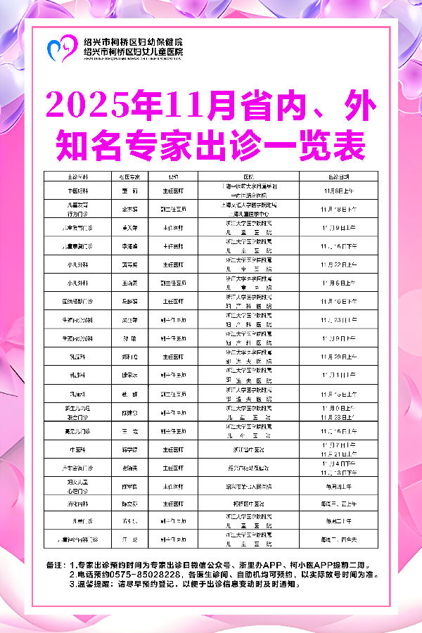 专家出诊信息(2025年11月)